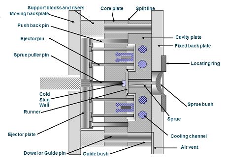 Coldrunner injection system – it is a system which delivers molten flow without additional heating. On completion of process, runner becomes cold and is removed out of mould.